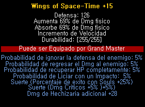 Wing of Spark Time Dmg Exellent +15 Full Option(28) Dmg + 28 50000 Cash