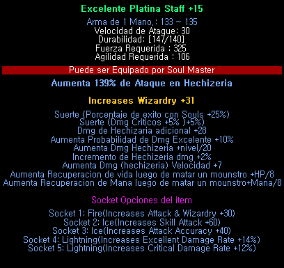 Platina Staff Exellent +15 Full Option(28) + Socket 5th 40000 Cash