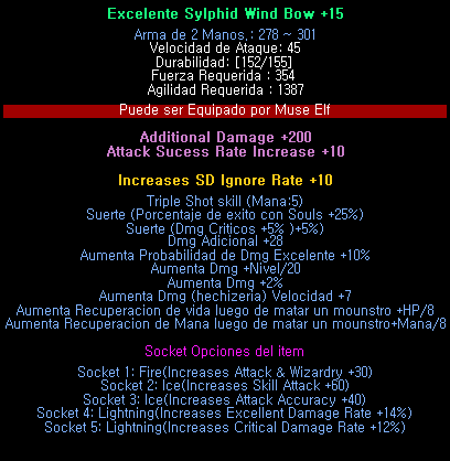 Exellent +15 Full Option + 380 + 5 Socket Fire+Ice+Light 5th |