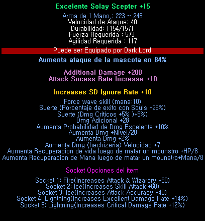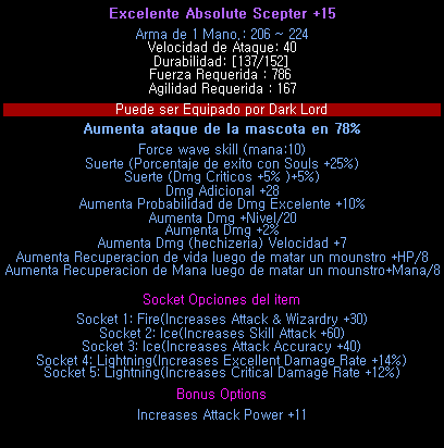 Exellent +15 Full Opcion(28) Dmg + 28 |